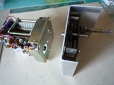 TS-520用VFO VFOケースを外す 取り付け板を外す 取り付け板からギヤ部を外す 取り付け板の前面 板切り出し 穴明け後、右側面の曲げ加工 左側面の曲げ加工の前に、短いので補強のため押さえ板を取り付け 補強後、曲げ加工 曲げ加工完成 ギヤ部取り付け 本体取付け、その後VFOケース実装 ケースへの固定方法検討 固定用 L金具を両側へ取り付けて完成 改造前(左)と改造後(右)